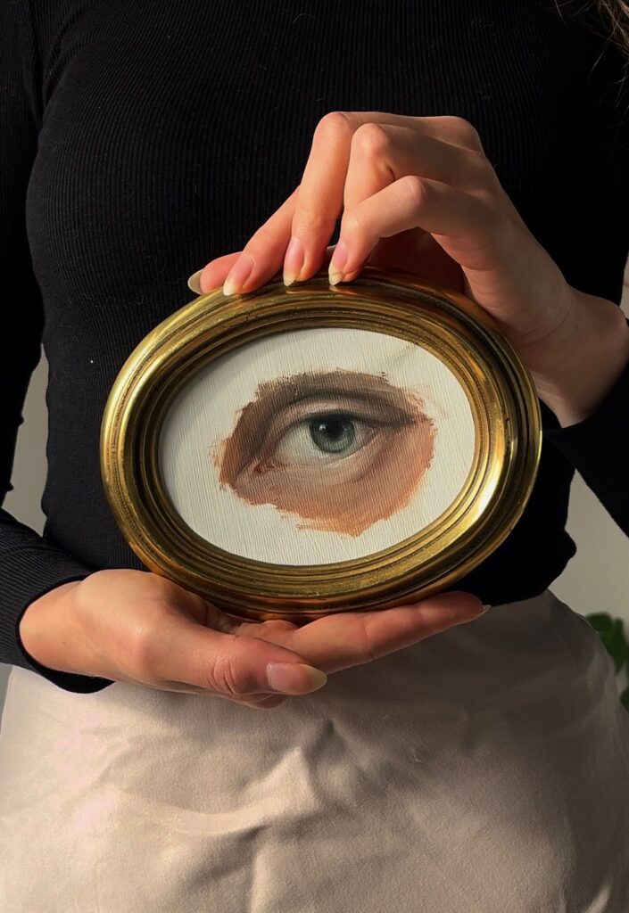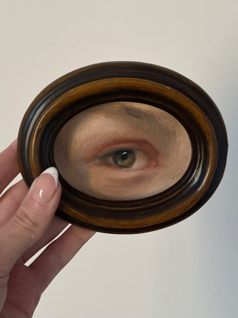 Commission an eye portrait inspired by the 18th Century tradition, framed in a unique vintage piece.